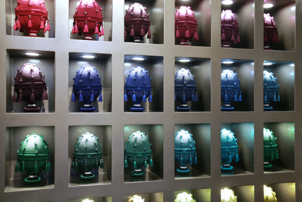 49個(gè)法貝熱彩蛋,由滾繩、小穗制作而成,用色彩的層次變化來(lái)達(dá)到視覺(jué)的震撼。