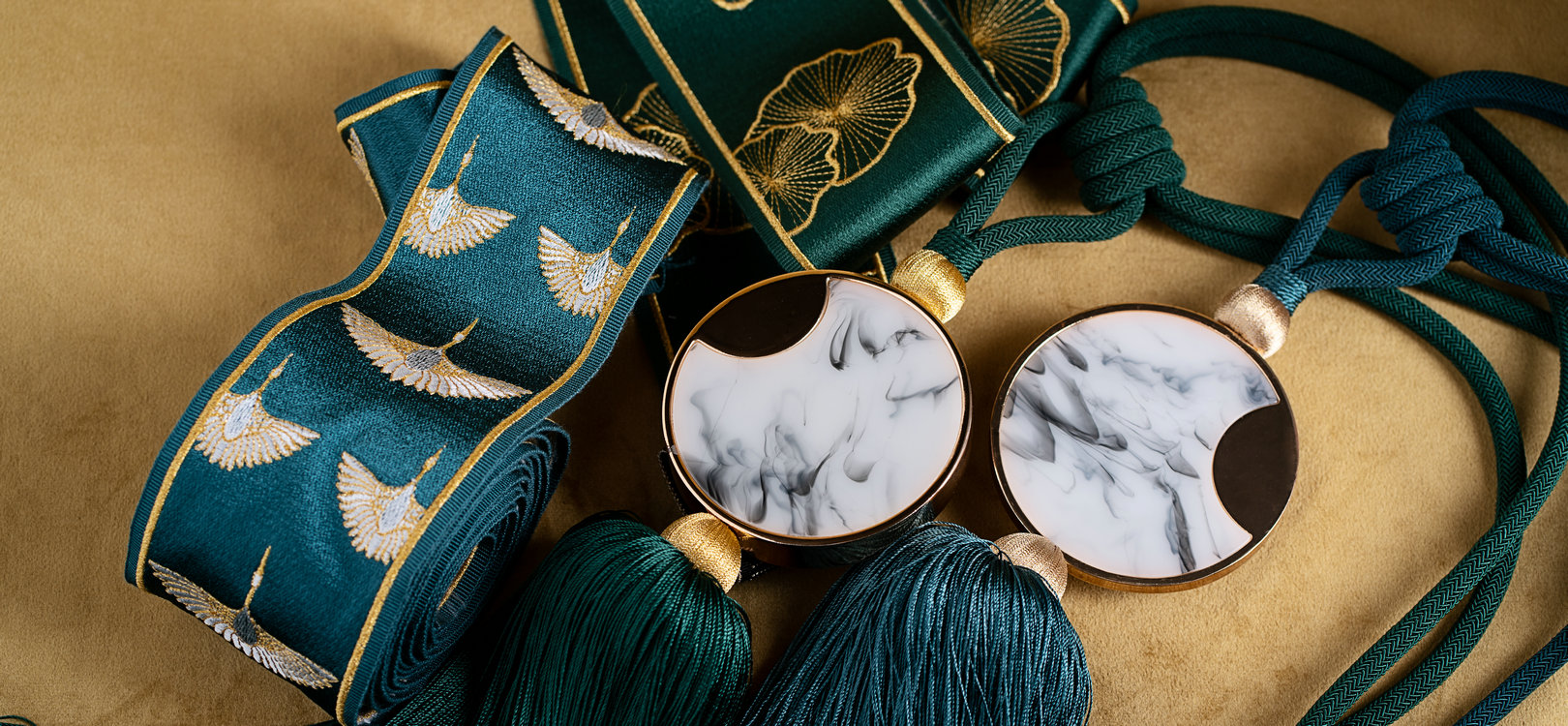 鎏金閣系列產(chǎn)品將傳統(tǒng)元素與摩登時尚的新設(shè)計相融合,以緞紋底帶呈現(xiàn)華貴光感,展示新中式的時尚與富麗堂皇。