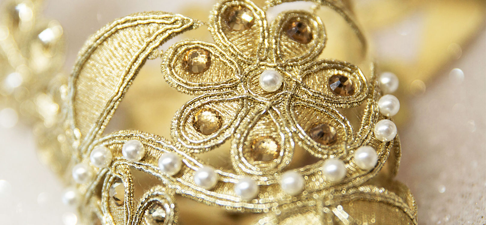 楓丹白露由朱自清先生翻譯, Fontainebleau法語中的原意是美麗的泉水。 也正如法國楓丹白露宮,所彰顯的精致奢華。 整套系列采用水溶刺繡工藝,為有別于傳統(tǒng),設(shè)計(jì)師結(jié)合高亮珍珠、亮片與奧鉆元素完美詮釋法式浪漫的優(yōu)雅與華麗。